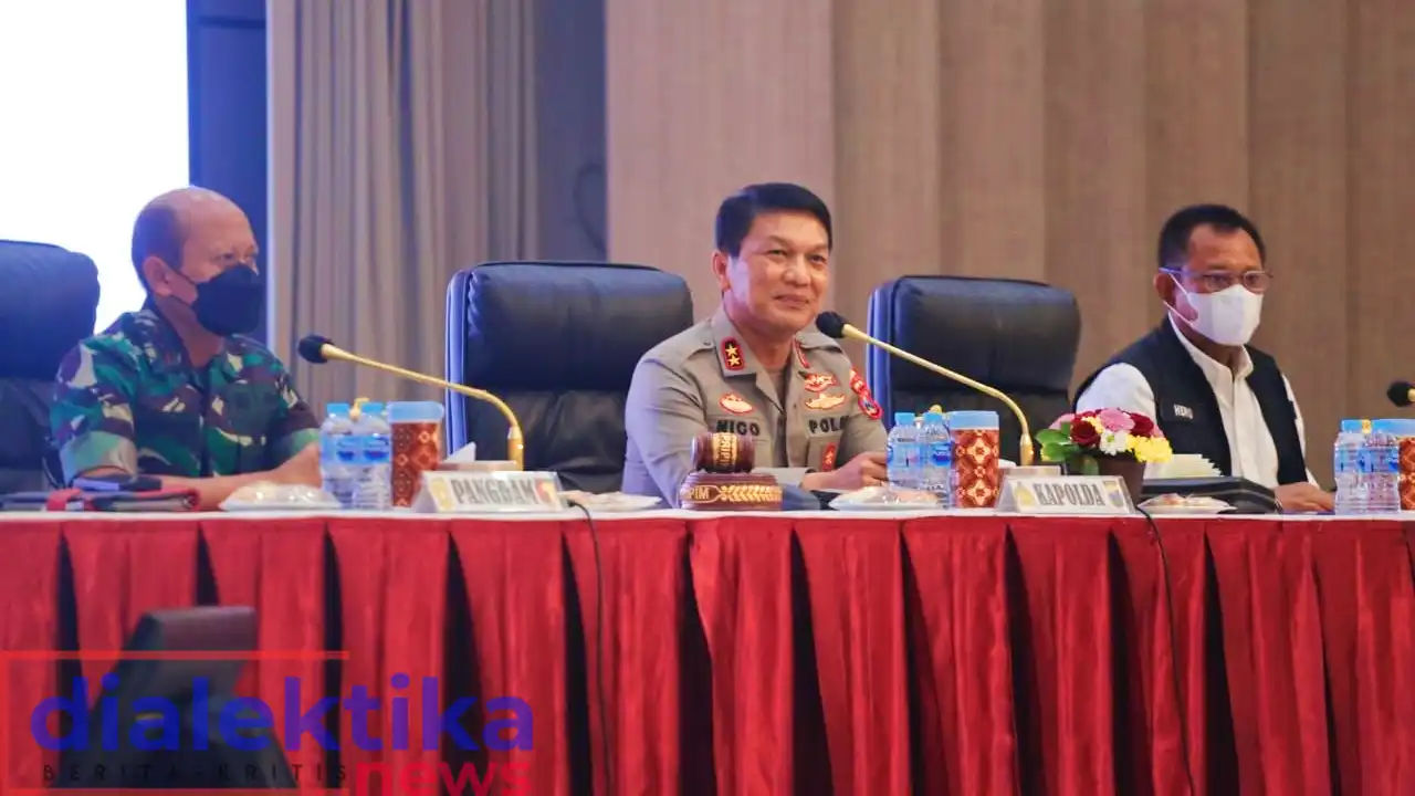 dialektika.news – Forum Koordinasi Pimpinan Daerah (Forkopimda) Jawa Timur (Jatim) bersama stakeholder melakukan rapat koordinasi (Rakor) Operasi Lilin Semeru 2021 siapkan pengamanan Natal dan Tahun Baru (Nataru) 2021-2022 di Jawa Timur di Mahameru Mapolda Jatim, Sabtu (18/12/2021).