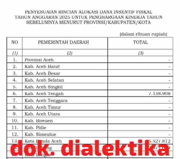Sumber dokumen yang berhasil dihimpun dialektika, dana insentif fiskal yang diterima Pemerintah Kabupaten Sumenep TA 2025 dari pemerintah pusat berjumlah Rp. 7.006.290.000. Dana ini untuk meningkatkan kualitas pengelolaan keuangan daerah.
